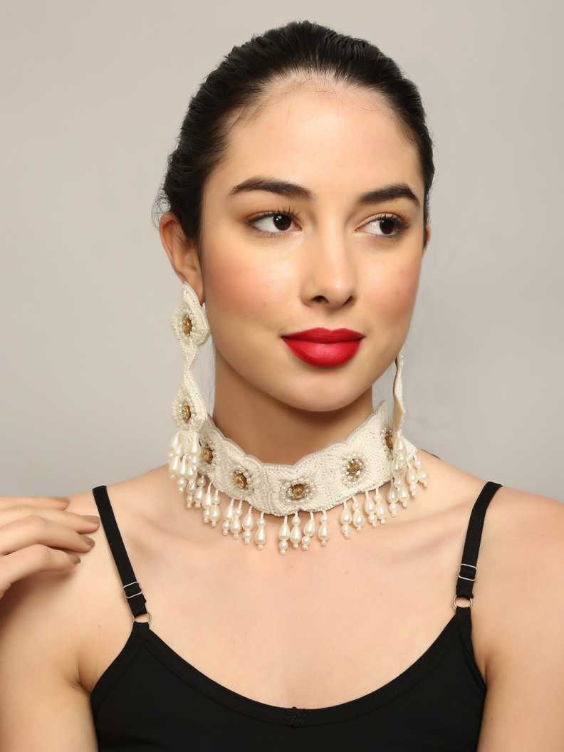 Glass, Plastic, Fabric Jewel Set (White)